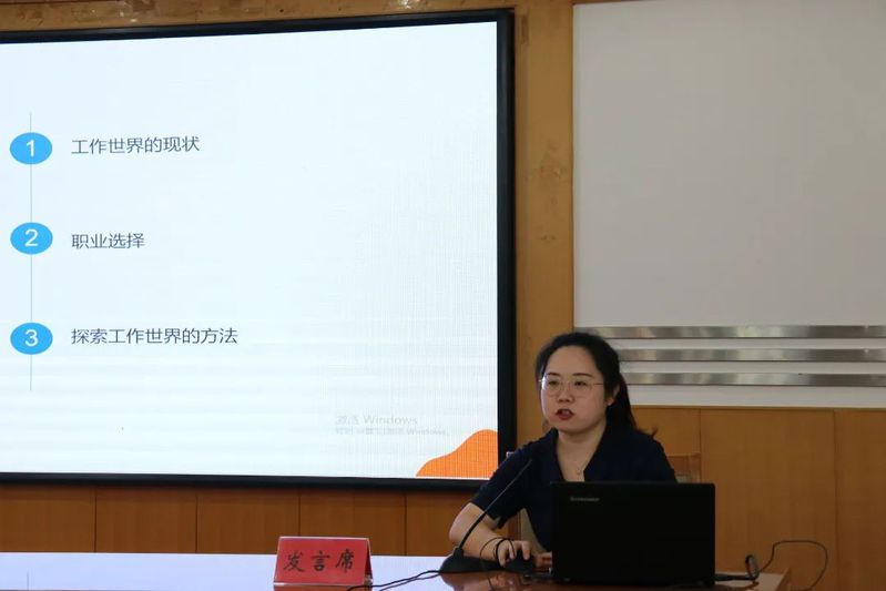 外国语学院辅导员邢琛从大学生将要面临的职业选择和社会现状出发,分析了近年毕业生人数变化和外语类职业道路选择,建议同学们在夯实专业基础的同时更要提升综合素养。