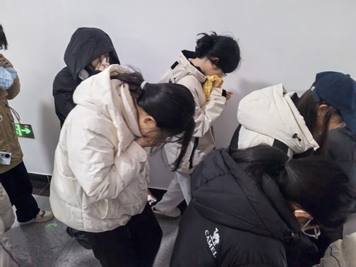 随着疏散信号响起,同学们迅速响应,确认最近的安全出口并全程弃用电梯,弯腰低姿、用湿毛巾捂住口鼻,沿预定路线有序撤离。整个疏散过程紧张有序、衔接顺畅,无拥挤、推搡等情况发生,圆满完成了应急疏散演练任务,充分展现了同学们良好的安全素养和应急反应能力。